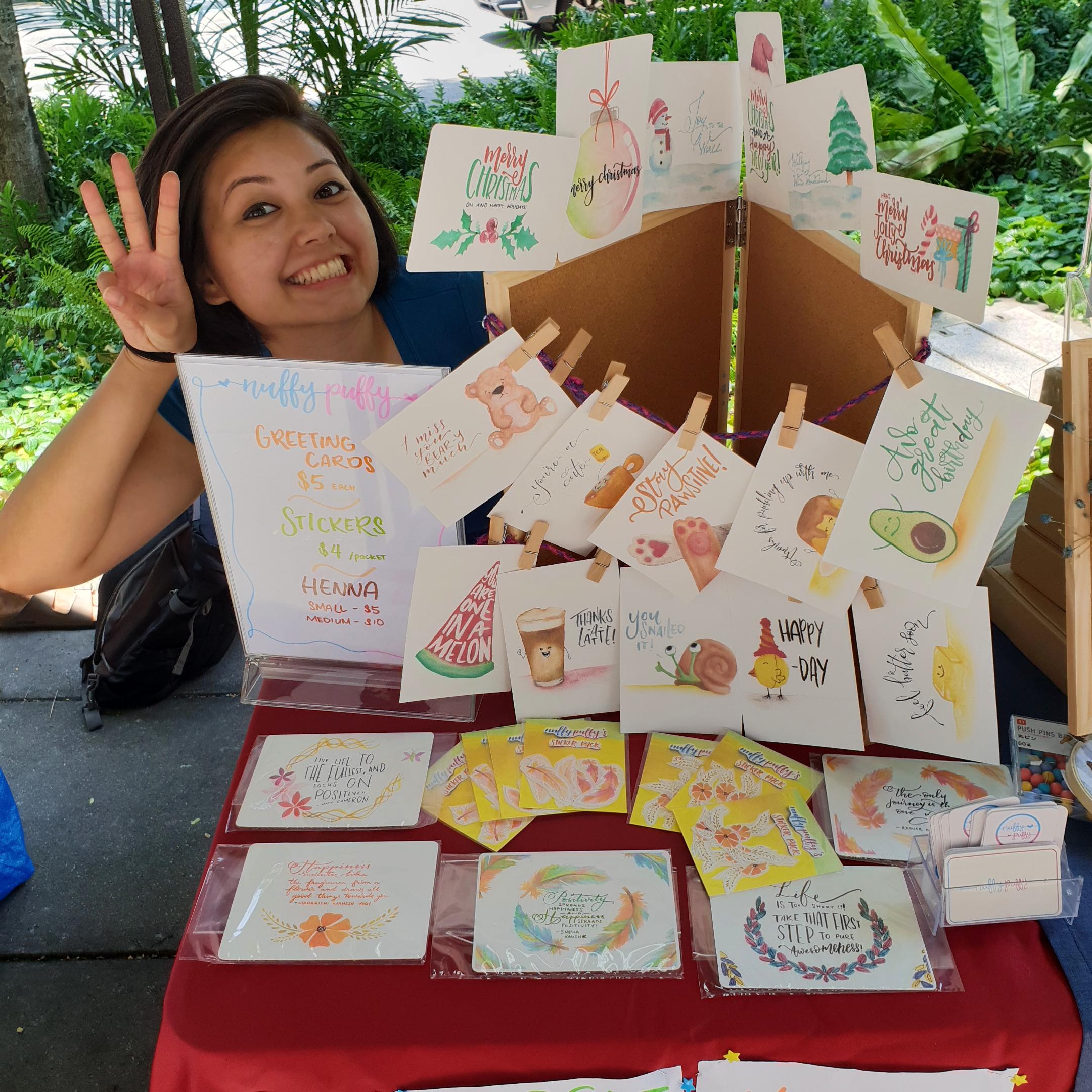 I have created greeting cards, stickers and more. Not to forget a sideline as a Henna artist and brave enough to open Brush Calligraphy workshops back in 2018.